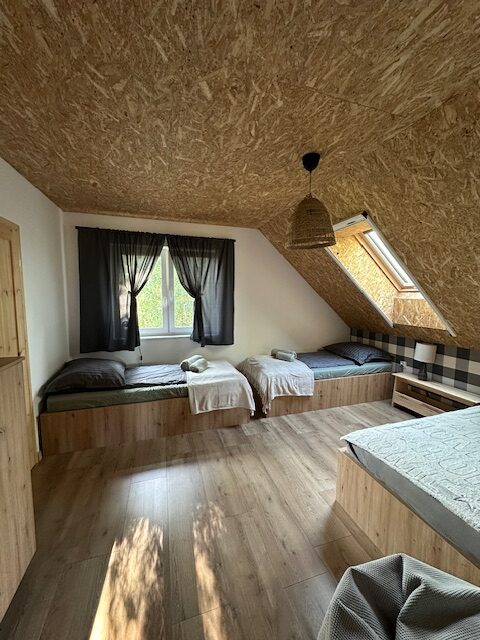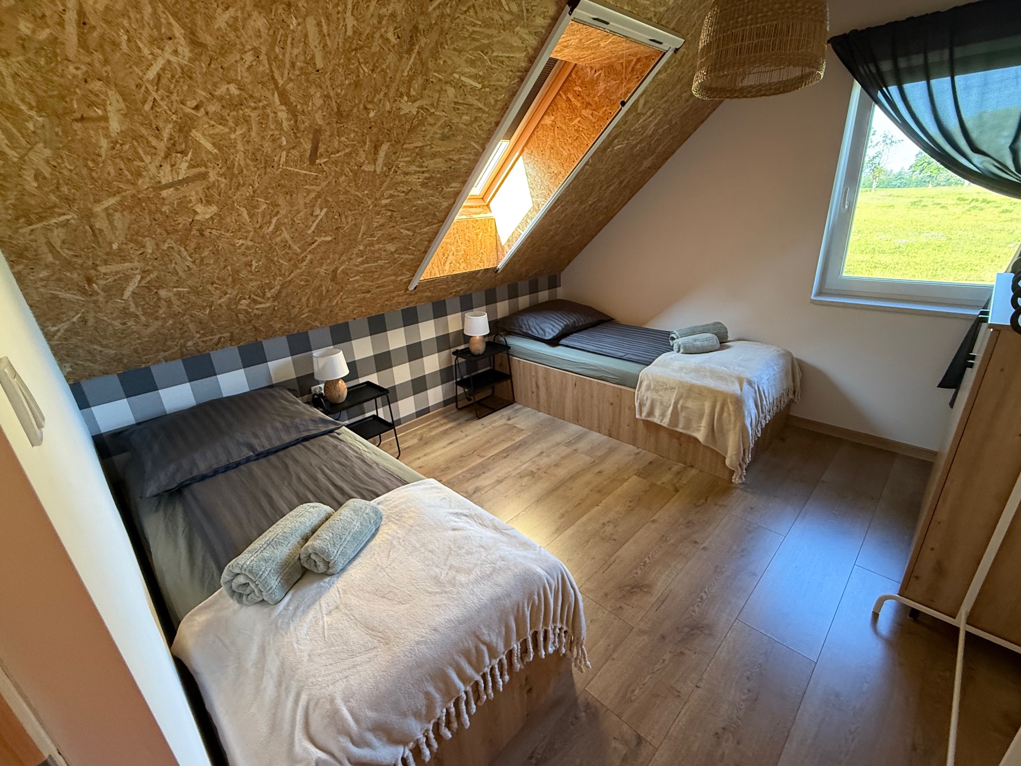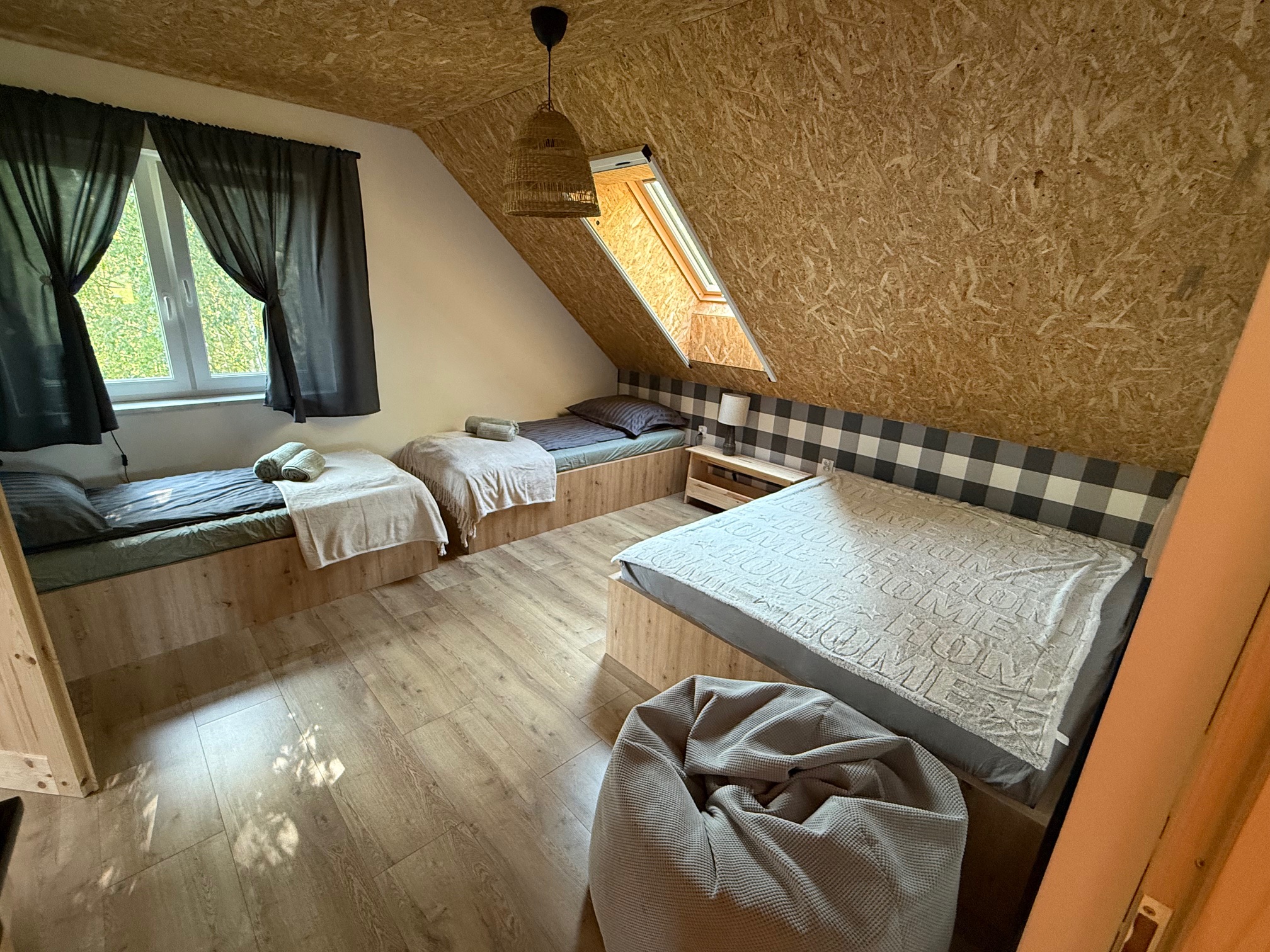 Nasz obiekt zapewnia wygodę zarówno rodzinom, jak i grupom znajomych. Ponieważ domek jest całoroczny, możesz odwiedzić go o każdej porze roku. Goście mają do dyspozycji 4 sypialnie, 2 łazienki, w pełni wyposażoną kuchnię oraz przestronny salon z jadalnią. Dodatkowo, na zewnątrz znajduje się duży ogród i taras z miejscem do wypoczynku.