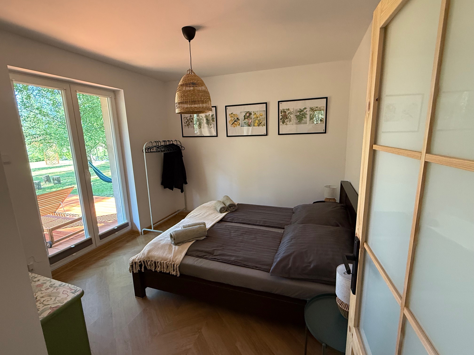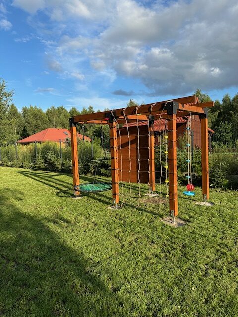 Na terenie posesji czeka prywatny ogród z leżakami i hamakami. Oprócz tego, do dyspozycji gości są rowery, kajaki i SUP, które pozwalają aktywnie spędzać czas. Natomiast dla osób ceniących relaks przygotowano balię z widokiem na zachód słońca. W rezultacie każdy znajdzie tu coś dla siebie – od aktywnych atrakcji po błogi odpoczynek.